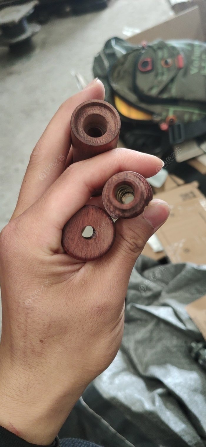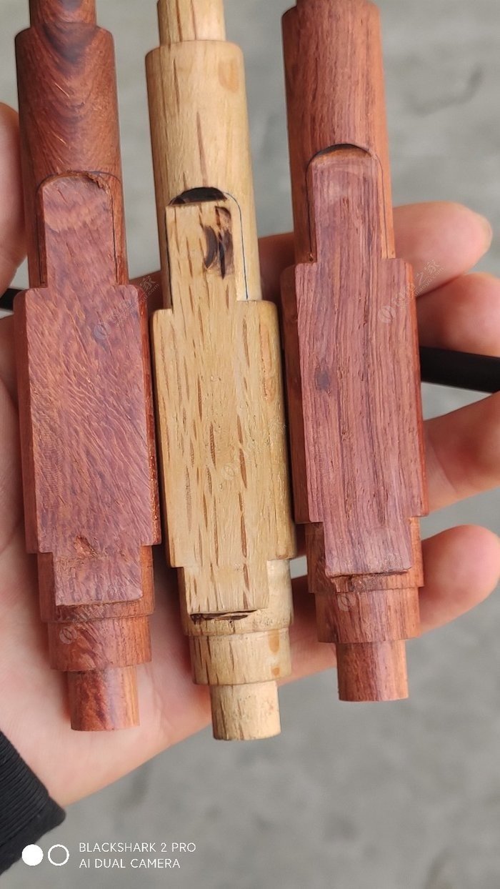 因為尾節素材是有錐度的,所以需要在三個部件上分別打上三個不同的孔徑