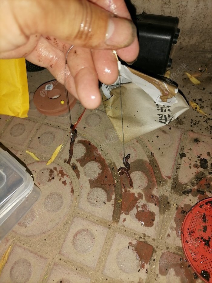 掛蚯蚓的時(shí)候也要注意掛法,我一般掛法是:鉤尖從蚯蚓頭部約1公分處扎入,扎滿鉤,并露出鉤尖,這樣能保持蚯蚓在水中活動(dòng)的時(shí)間更長(zhǎng)一些,能更好的引誘到鯰魚。