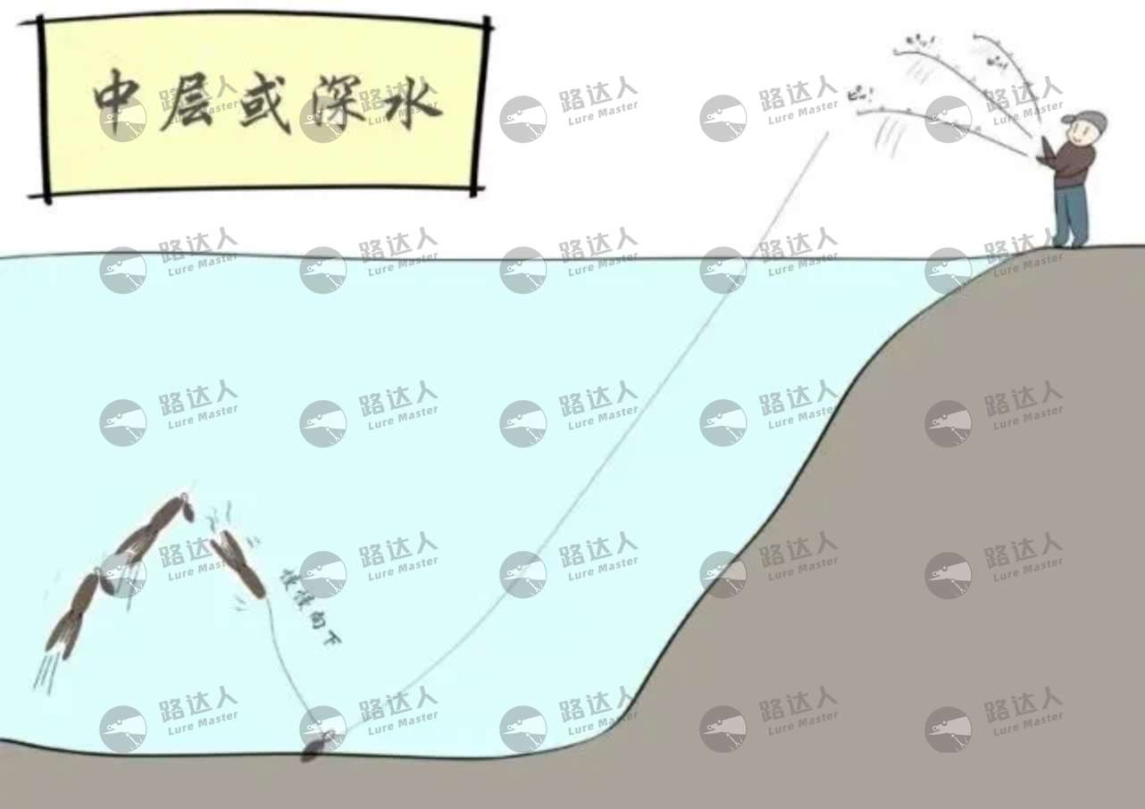 自由釣組在深水區(qū)能極大的發(fā)揮釣組本身的特性。所以釣深水的話,魚竿不必過長,選擇尼龍或碳線皆可。中層、深水區(qū)就是
